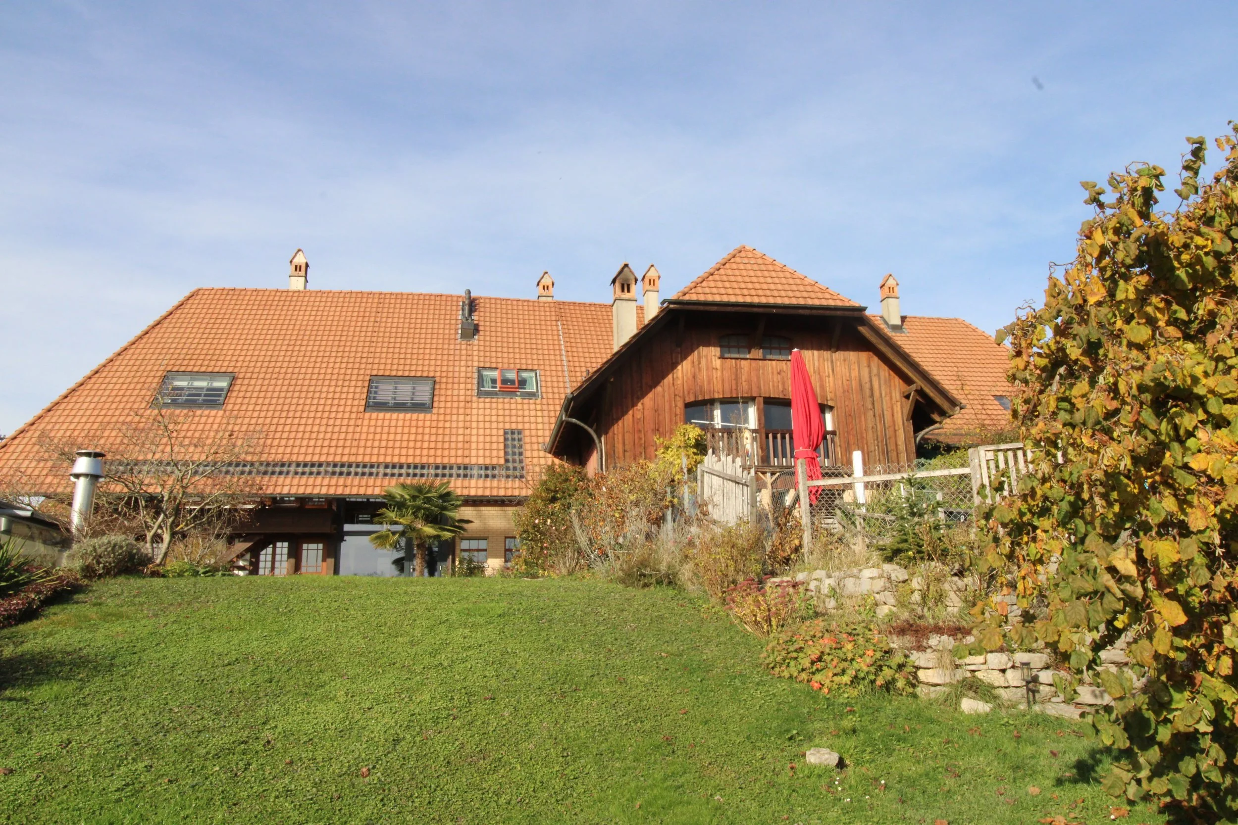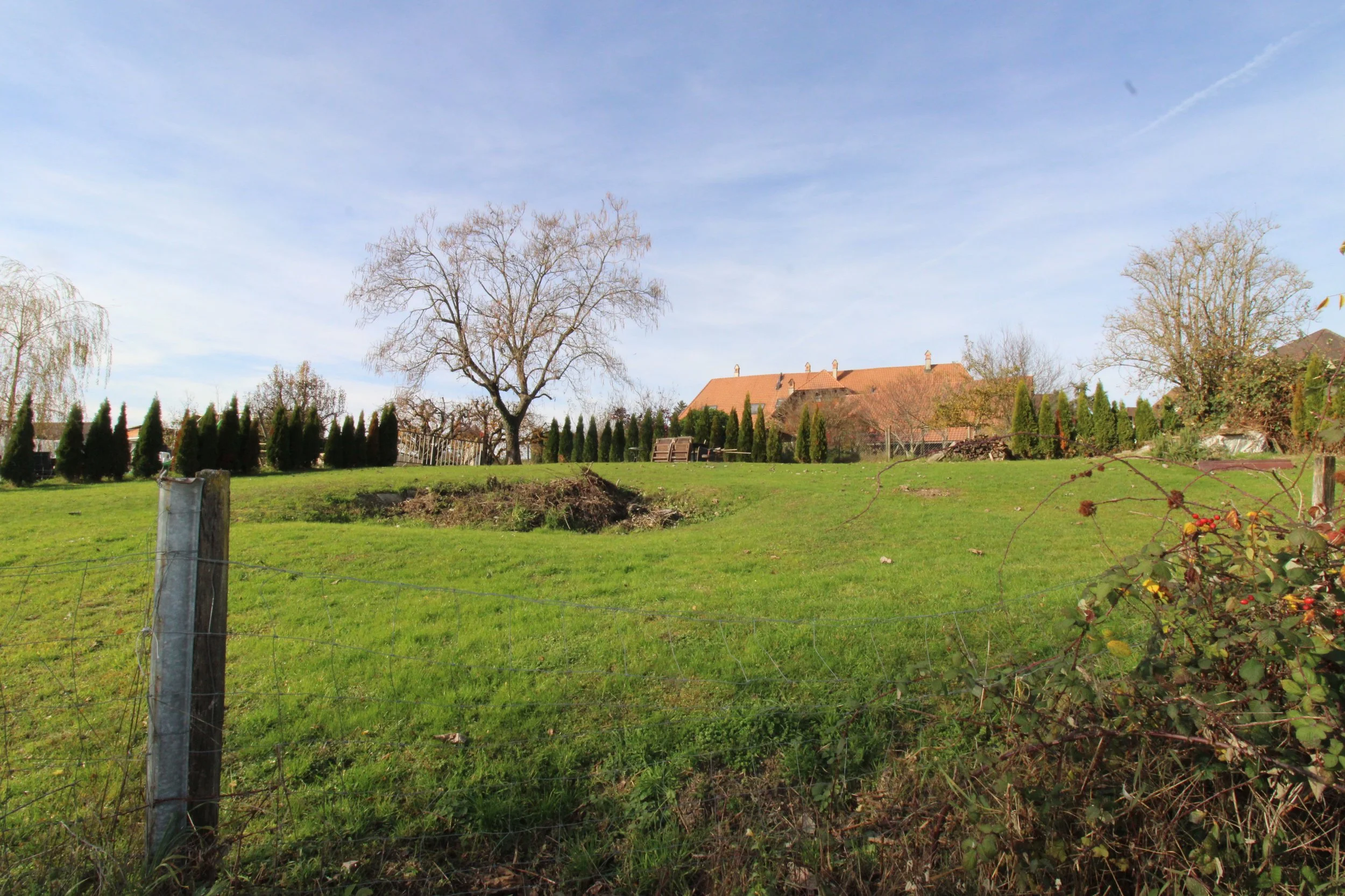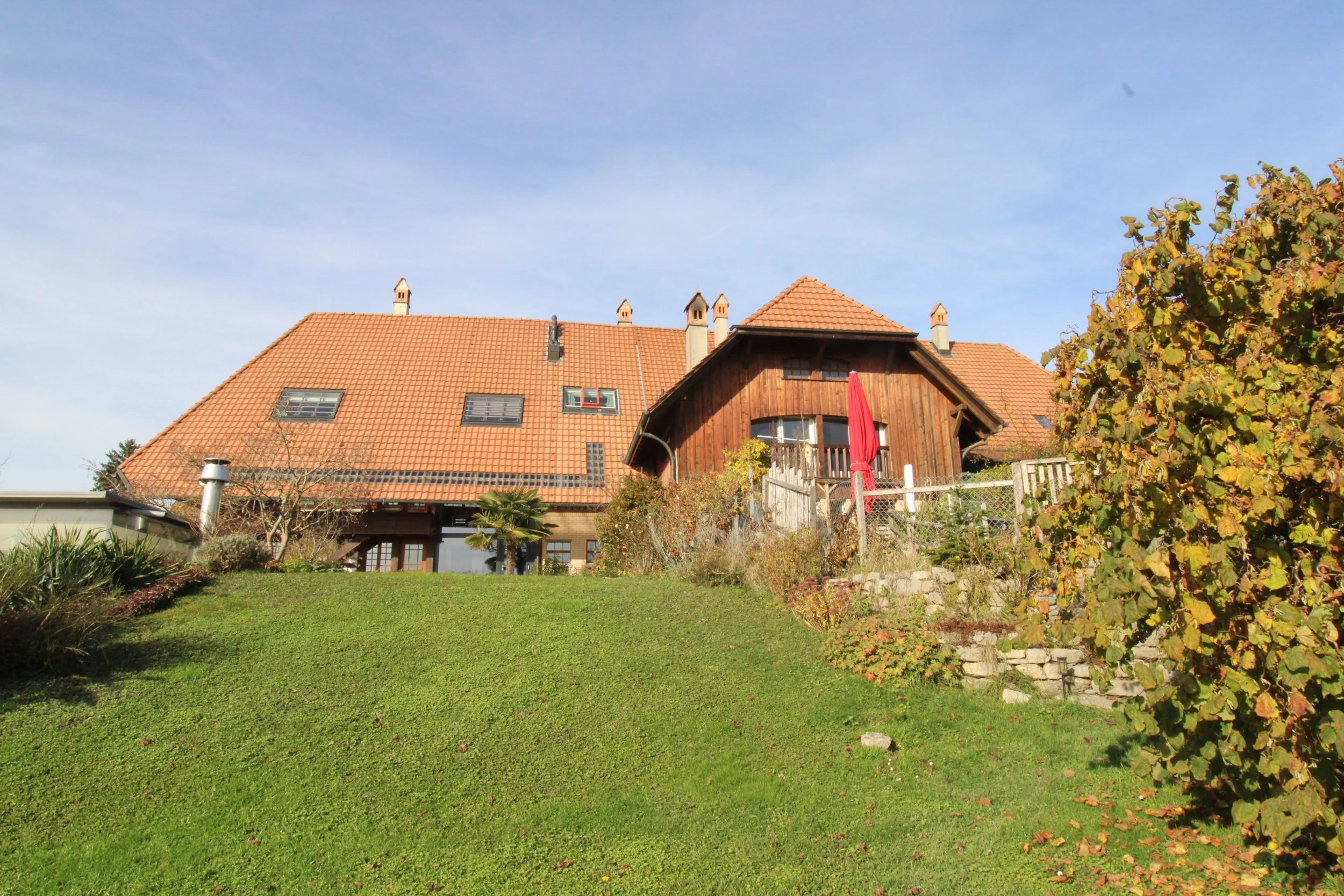 Unterhalb der Liegenschaft befindet sich eine Grünfläche von ca. 3'076m2, welche zu 1/4 zur Wohnung gehört. Die Fläche für die Wohnung ist mit einem Gartenzaun separiert, mit ca. 750 m2 Fläche.